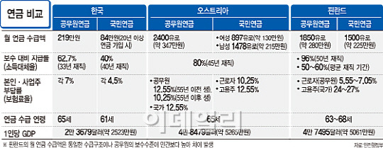 또한, 오스트리아와 핀란드의 사례를 살펴보면, 각국의 연금 시스템은 기여율과 연금 수급 연령이 다르게 설정되어 있어요.