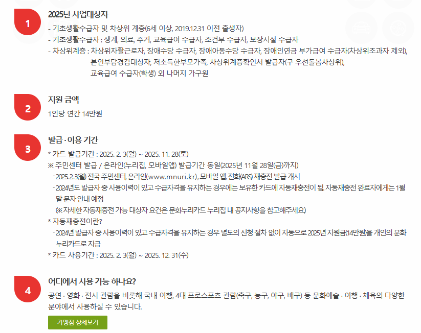🔍 더 많은 가맹점은 문화누리카드 공식 홈페이지에서 확인 가능!
