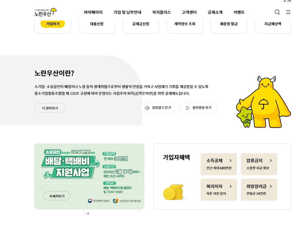 노란우산 홈페이지 방문을 환영합니다.